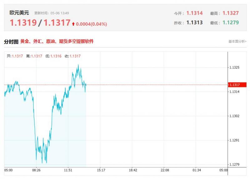 5月6日,周二欧市盘中,欧元/美元在周二的欧洲时段上涨至1.1350附近。由于美元(UD)谨慎交易,投资者关注将于周三宣布的美联储(Fd)利率决定,主要货币对小幅走高。追踪美元兑六种主要货币价值的美元指数继续在100.00附近面临压力。 根据CFdWatch工具,交易员已经完全消化了美联储将在5月份将利率稳定在4.25%-4.50%的