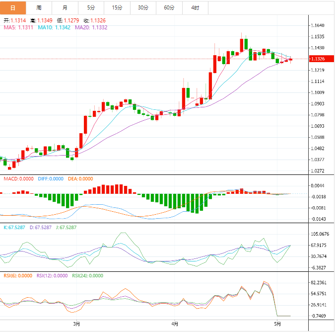 据最新数据显示,截至纽约汇市尾市,1欧元兑换1.1326美元,高于前一交易日的1.1300美元。进入欧盘时段,市场交易员们严阵以待,期望能精准把握交易时机。以下为您详细剖析今日欧盘欧元兑美元的操作策略。 货币兑:欧元/美元 一、行情分析 (一)技术面解读 从日线图来看,欧元兑美元近期