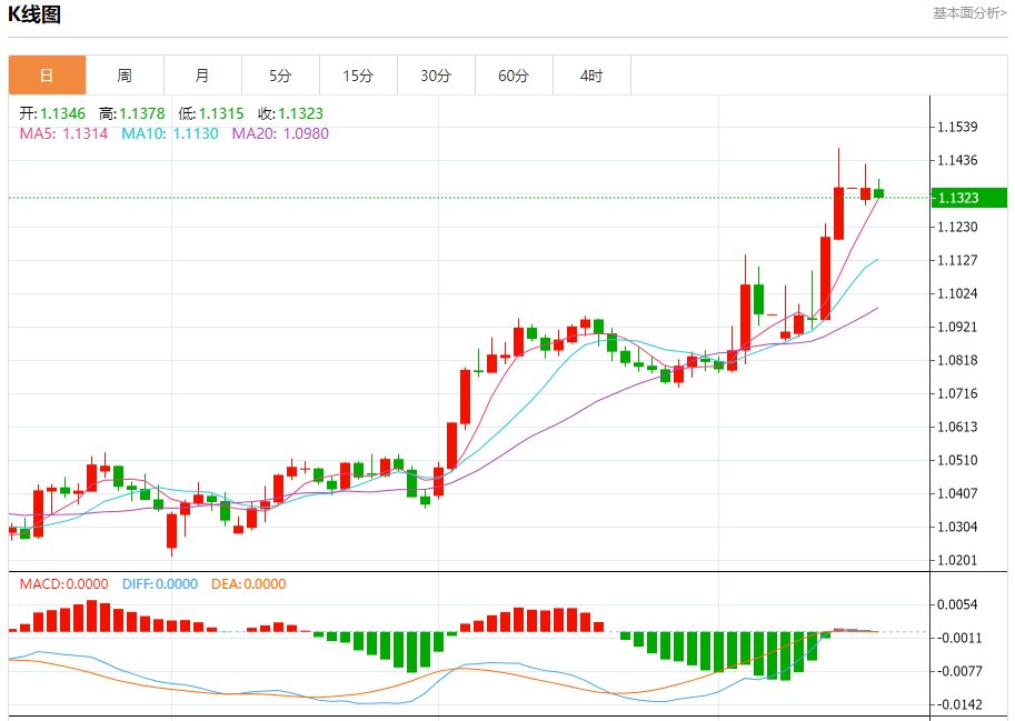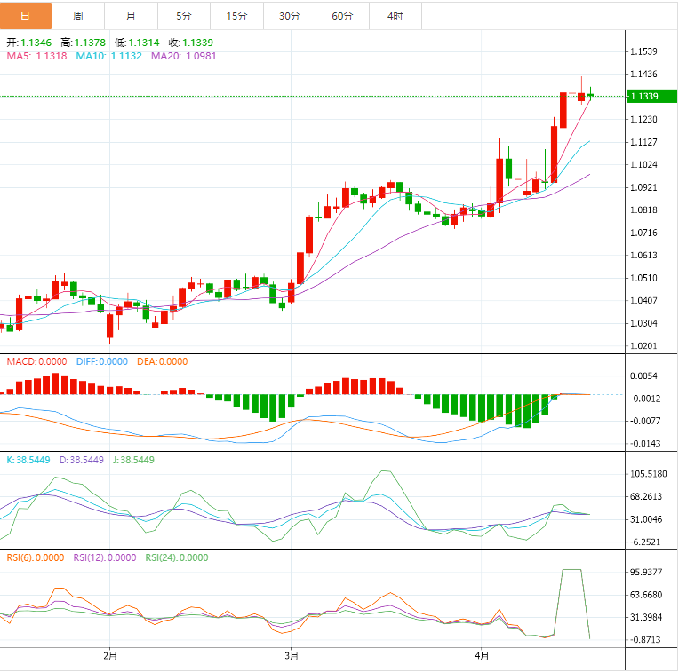 周三(4月16日),外汇市场上美元兑欧元的走势备受瞩目。当日欧元兑美元汇率开盘报1.1280,截至发稿前,欧元兑美元报1.1391,涨幅0.96%,盘中最高价1.1392,最低价1.1280。这一波动背后,蕴含着复杂的市场因素,投资者急需清晰的操作策略指引。 货币兑:欧元/美元 一、行情分析 (一)美元指数波动与欧元