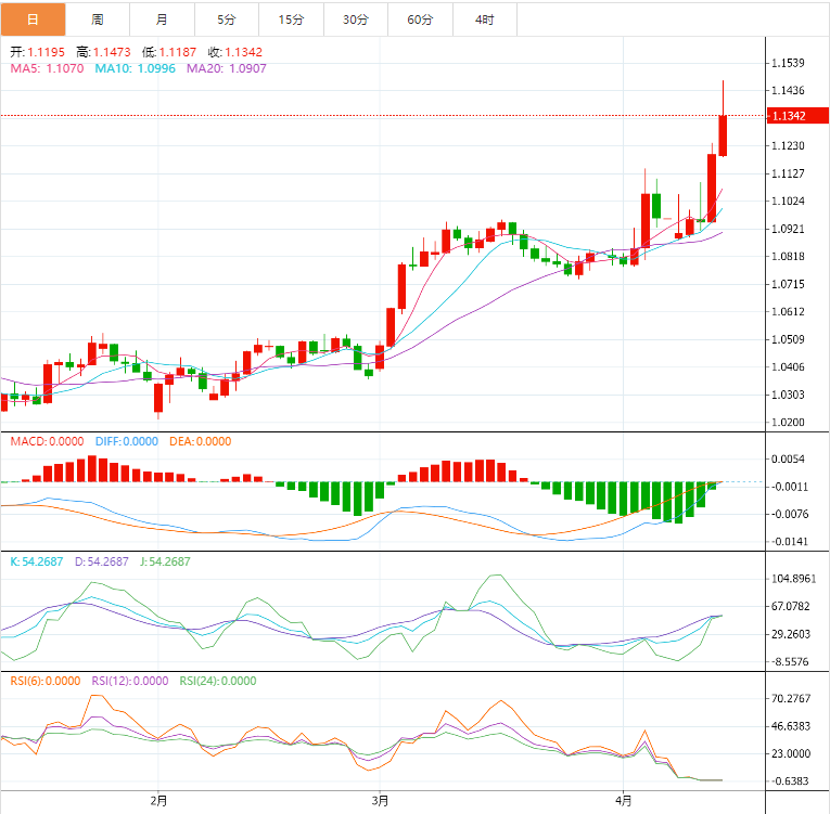 4月14日,周一亚市盘中,欧元/美元小幅走低,在前两个交易日上涨后徘徊在1.1360附近。该货币对因美元走软而升值,在美中贸易紧张局势升级的情况下,美元承压,重新点燃了对全球经济衰退的担忧。 中国财政部周五宣布大幅提高美国商品的关税,将关税从84%提高到125%。此举是为了回应美国总统唐纳德·特朗普一天前决定将中