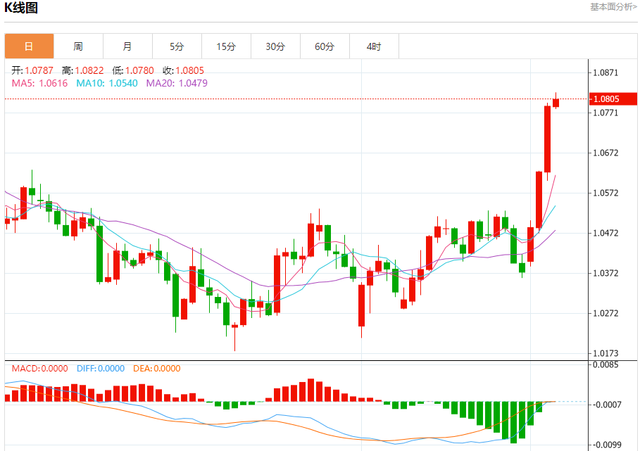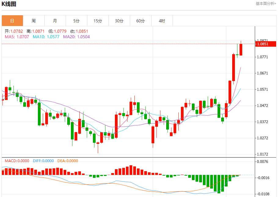 欧元兑美元今日汇率最高1.0807,最低1.0804,涨跌0.0019,涨跌幅0.18%。 市场基本面分析 德国国债收益率飙涨,10年期德债收益率单日暴涨30个基点,创1990年以来最大单日涨幅,2年期和30年期德债收益率也均涨超20个基点。市场对德国的财政扩张计划反应强烈,预计政府借贷将大幅增加。此次德国财政扩张计划