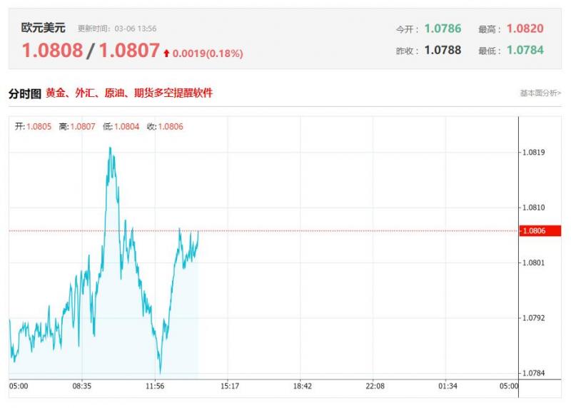 3月6日,周四亚市盘中,欧元/美元徘徊在1.0796附近。 欧元/美元周三飙升,上涨1.75%并触及1.0800关口,因为在美国总统唐纳德·特朗普再次转向自己的关税策略后,风险情绪上升。特朗普总统再次踩下了自己的贸易战略的刹车,威胁要对自己的公民征收严厉的进口税,以惩罚其他国家对唐纳德·特朗普的一连串轻视。 欧洲央行