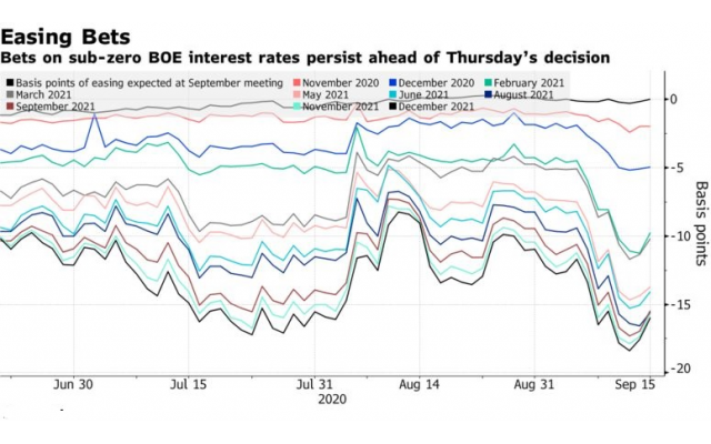 9月16日(周三),包括Lucy Meakin在内的分析师团队表示,随着人们对英国经济从疫情中复苏的乐观情绪逐渐消退,预计英国央行官员本周将为更多的货币刺激措施奠定基础。经济学家预测英银本周维持政策不变,但普遍预计年底前再次扩大债券购买。降息可能不会是英国央行的首选,但货币市场反映其最早在明年2月降息。