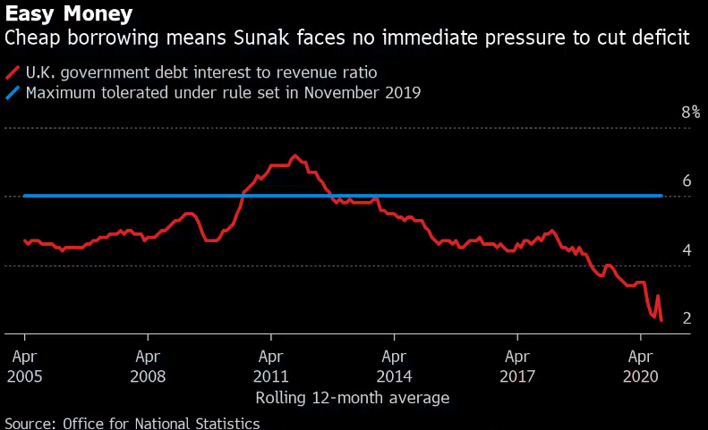 英国的借贷利率维持低位,意味着财长不用马上面对降低赤字的压力