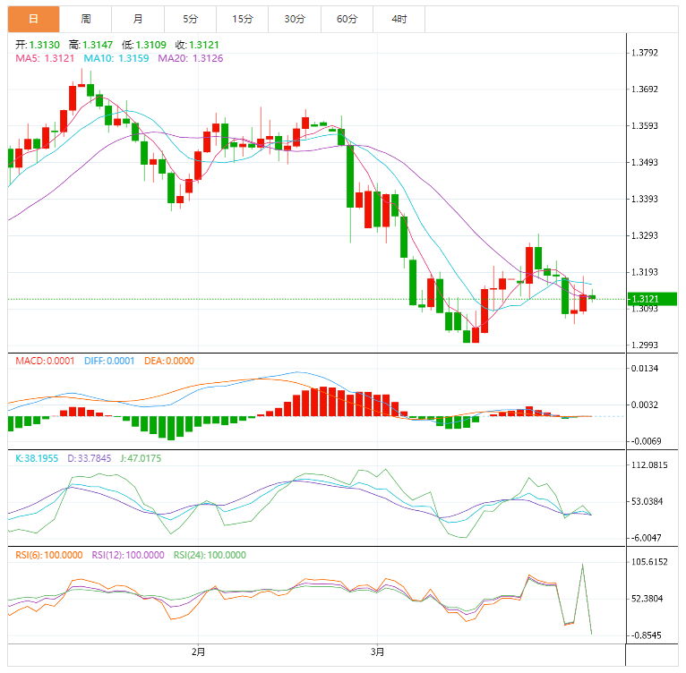英镑兑美元当周累计上涨0.70%至1.3125。英国央行本周再次加息,以阻止快速上升的通胀变得根深蒂固,但在家庭面临能源费用大涨的巨大打击之际,该央行在进一步加息的必要性上软化了措辞。乌克兰冲突导致能源费用急升,意味着英国家庭预算面临的压力,可能比央行上月预测的30年最高水平还要大得多。 英国央行决策者软化了需更多次加息的立场,投资者因此削减对利率将在年底前大幅升至约2%的押注。货币市场预计到今年年底,英国央行加息将不到120个基点。