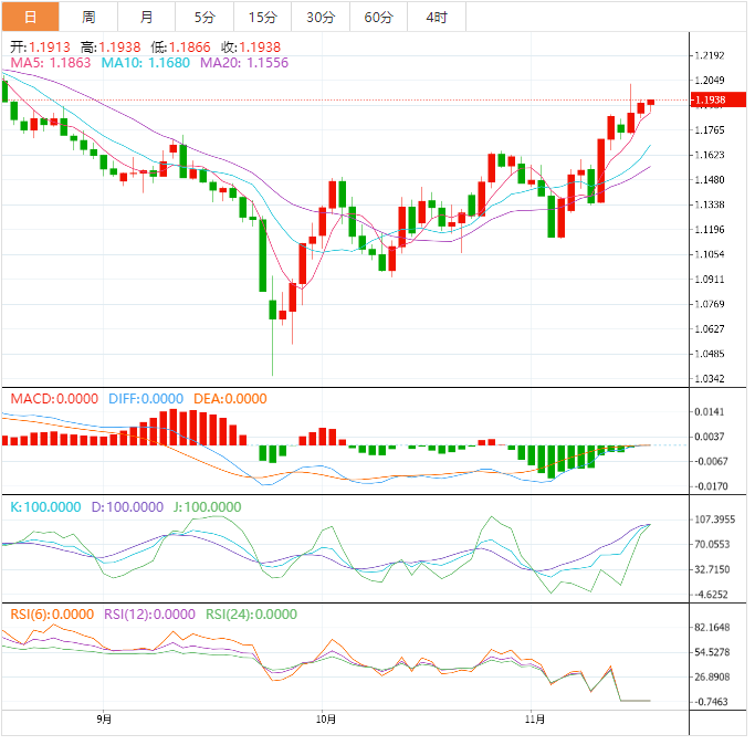 英镑基本面:英镑兑美元在1.1880附近削减三日内首日跌势。汇价反弹脱离盘中低点,但依然看空,同时14天相对强弱指标录得看跌背离。汇价录得更高低点和RSI相背离,加上连续三日录得更低的高点令英镑兑美元空头充满希望,交易员等待英国秋季声明。英国央行行长安德鲁?贝利在英国财政部特别委员会(Treasury Select Committee)作证时就货币政策发表评论。最新数据显示,英国劳动力市场仍然非常紧张,仍有可能进一步加息。