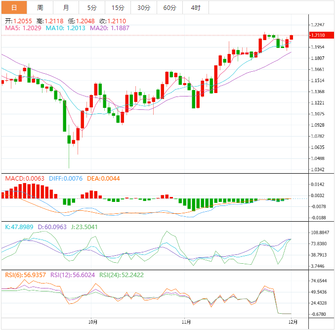 英镑基本面:在英国/美国关键数据之前的两天上升趋势中,英镑兑美元触及了1.2100心理关口。展望未来,英国11月标准普尔全球/CIPS制造业PMI终值有望证实46.2的初步预估,可以提供直接的指引。然而,主要关注的是美联储首选的通胀指标,即美国10月核心个人消费支出(PCE)价格指数,预期同比5.0%,前值5.1%。另外重要的是11月美国ISM制造业PMI月度数据,预期为49.8,前值为50.2。