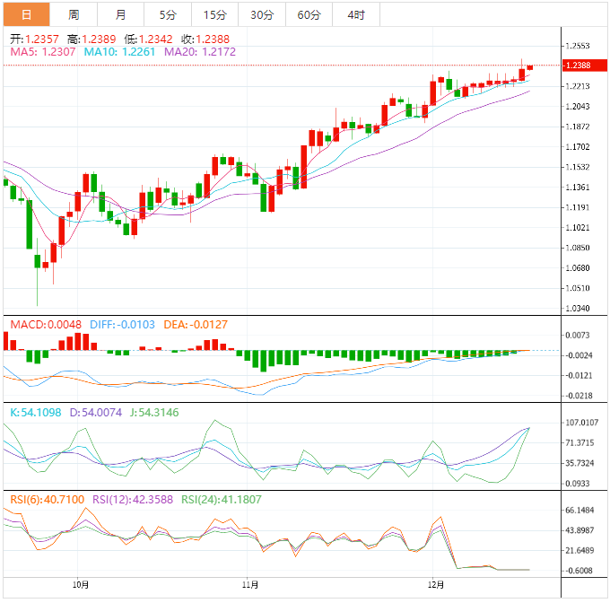 英镑技术面:英镑兑美元昨天强劲反弹,距离我们扩大的目标位1.2450只有几个pip,显示出一些受随机负性影响的看跌偏见,而EMA50继续从下方支撑价格。因此,认为继续主要看涨趋势的可能性是有效的,其下一个目标是1.2550,注意到突破1.2280将迫使价格在盘中开始修正的看跌波。