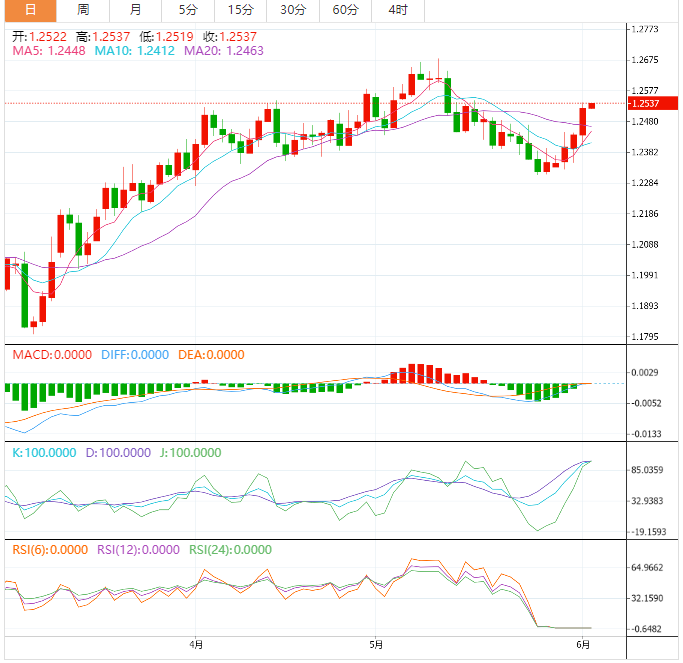 英镑兑美元正在积聚力量,准备突破61.8%斐波那契回撤位(从5月10日的高点1.2680至5月25日的低点1.2308)至1.2539。