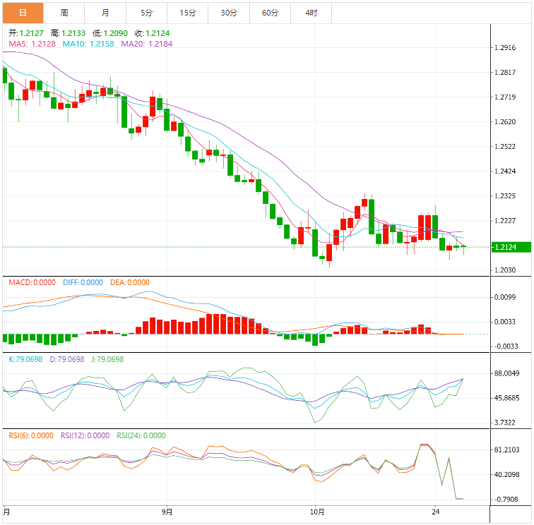 英镑兑美元徘徊在1.2120附近的窄幅区间,投资者将注意力转向将于11月2日宣布的英国央行货币政策会议。