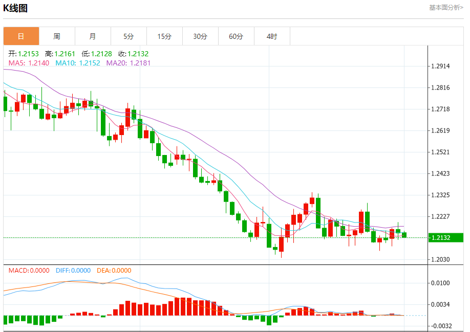 周三欧市盘中,英镑兑美元交投于1.2132,跌幅为0.17%。