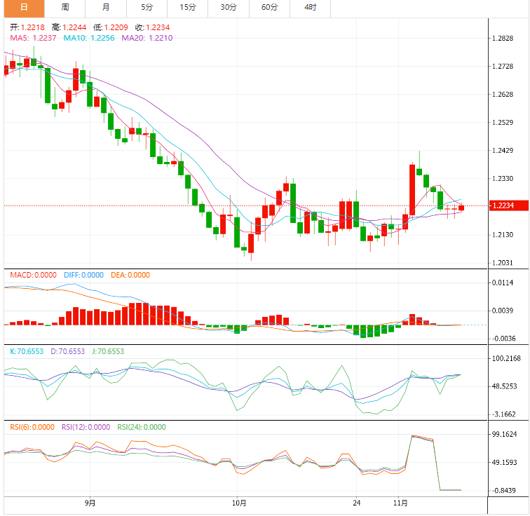 基本面上,英国周五公布的国内生产总值(GDP)初值好于预期,加上美元走弱,英镑兑美元可能得到了上行支撑。英国第三季度GDP下降至0.0%,而市场预期为收缩0.1%。按年计算,GDP保持不变,增长0.6%,低于预期的0.5%。这些数据可能会改善市场对英镑(GBP)的情绪。