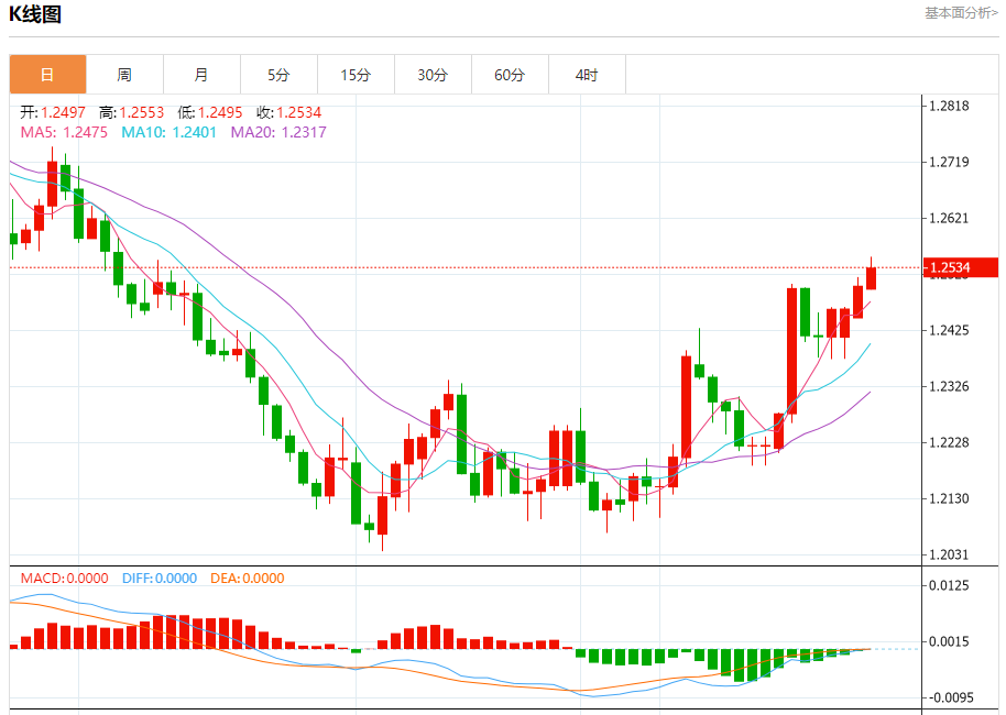周二欧市盘中,英镑兑美元交投于1.2535,涨幅为0.25%。