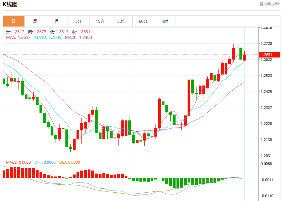 周五欧市盘中,英镑兑美元交投于1.2652,涨幅为0.22%。