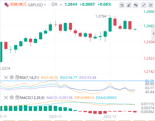技术面上,汇价上行的初步阻力位于1.2710,进一步阻力位于1.2781,关键阻力位于1.2824;汇价下行的初步支撑位于1.2596,进一步支撑位于1.2553,更关键支撑位于1.2482。