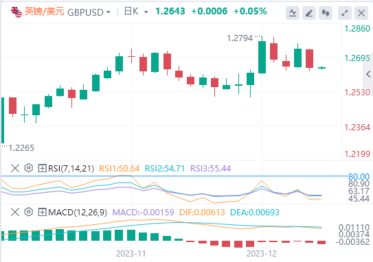 2、英镑/美元跌破1.26000美元的手柄将使空头在50日均线上运行。14周期每日RSI读数为54.91,表明英镑/美元在进入超买区域之前会升至1.28013美元的阻力位。