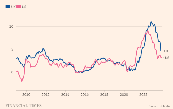 英国第三季度的物价增长速度出人意料地放缓,但仍保持在英国央行2.0%目标的两倍多。在这一年中,英国央行一直密切关注英国的就业市场,因为它仍然担心劳动力短缺会使工资增长居高不下,从而使通胀率难以回到2%的目标。