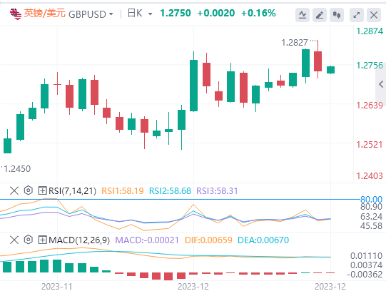 2、英镑/美元跌破1.27美元关口将使50日均线进入视野。14周期每日RSI读数为58.51,表明英镑/美元在进入超买区域之前会升至1.28500美元。