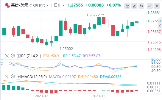 技术面上,汇价上行的初步阻力位于1.2785,进一步阻力位于1.2823,关键阻力位于1.2880;汇价下行的初步支撑位于1.2691,进一步支撑位于1.2634,更关键支撑位于1.2597。