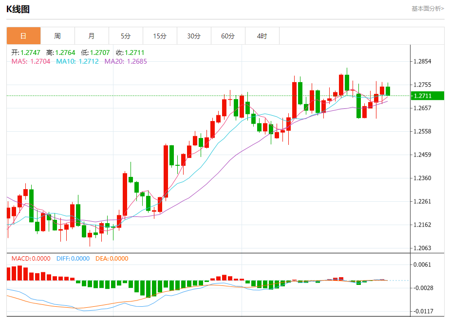 周二欧市盘中,英镑兑美元交投于1.2712,跌幅为0.28%。