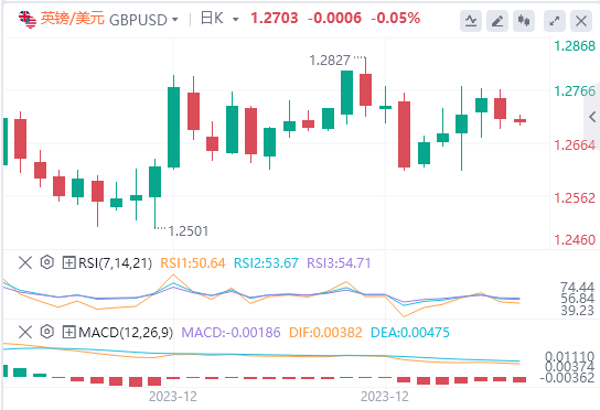 4、英镑/美元货币对近期表现强劲,主要是受到英国央行(BOE)和美联储货币政策背离的影响。英国央行坚持进一步加息的立场,即使通胀和工资增长等指标显示出回落迹象。与此相反,市场预期美联储最早可能在3月份启动宽松周期。