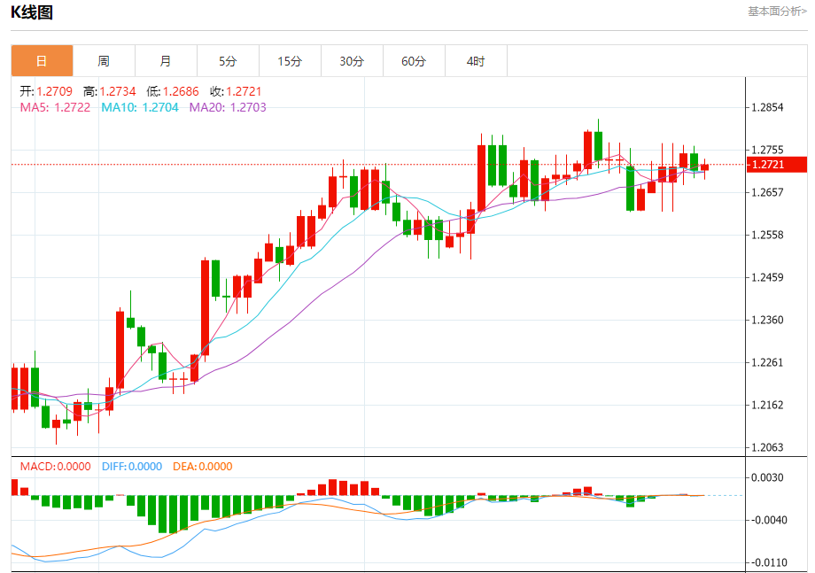 周三欧市盘中,英镑兑美元交投于1.2722,涨幅为0.10%。
