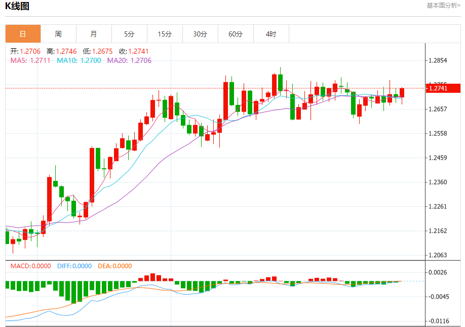周五欧市盘中,英镑兑美元交投于1.2741,涨幅为0.27%。