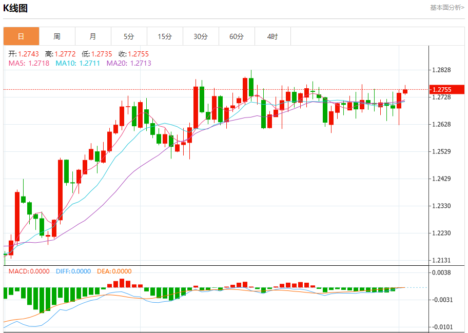 周五欧市盘中,英镑兑美元交投于1.2756,涨幅为0.10%。
