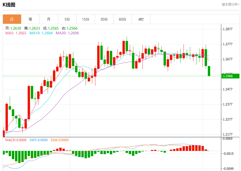 周一欧市盘中,英镑兑美元交投于1.2567,跌幅为0.53%。