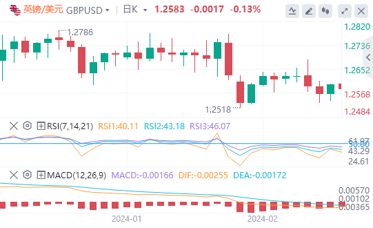 英镑方面,英国经济在连续两个季度GDP负增长后进入技术性衰退。2023年第四季季度本地生产总值(GDP)较上一季收缩0.1%下降0.3%。根据英国国家统计局的数据,2023年第四季度的GDP同比增长数字为-0.2%,较前值的0.2%增长,低于市场预期的0.1%。