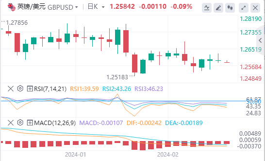 周一英镑/美元温和下跌至1.2597水平。由于经济数据清淡,加上美国市场因总统日假期休市,市场波动有限。