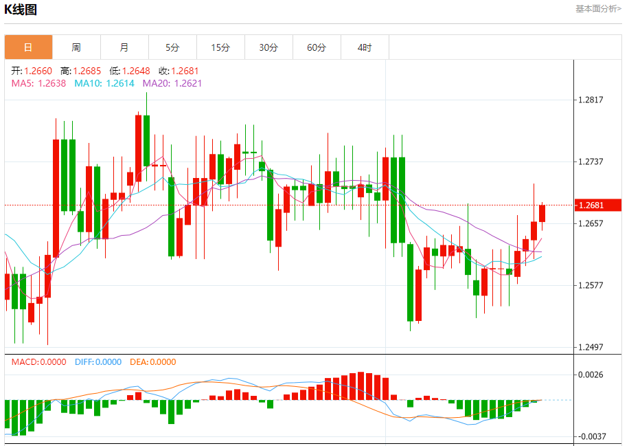 周五欧市盘中,英镑兑美元交投于1.2682,涨幅为0.17%。