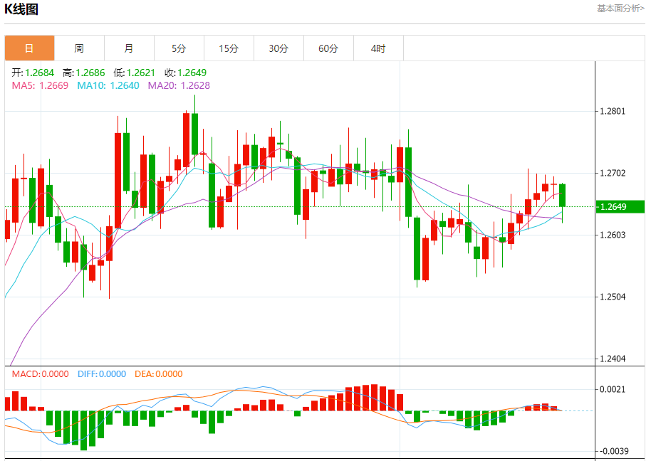 周三欧市盘中,英镑兑美元交投于1.2651,跌幅为0.27%。