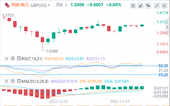 英镑/美元技术分析显示,14天相对强弱指标(RSI)位于50上方。这表明英镑/美元维持看涨势头。此外,滞后指标异同移动平均线(MACD)指标也表明确认英镑/美元看涨趋势。这从MACD指标位于中线上方并显示信号线上方的背离可以看出。