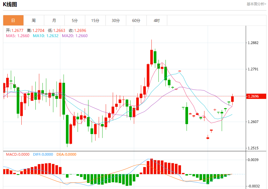 周三欧市盘中,英镑兑美元交投于1.2695,涨幅为0.13%。
