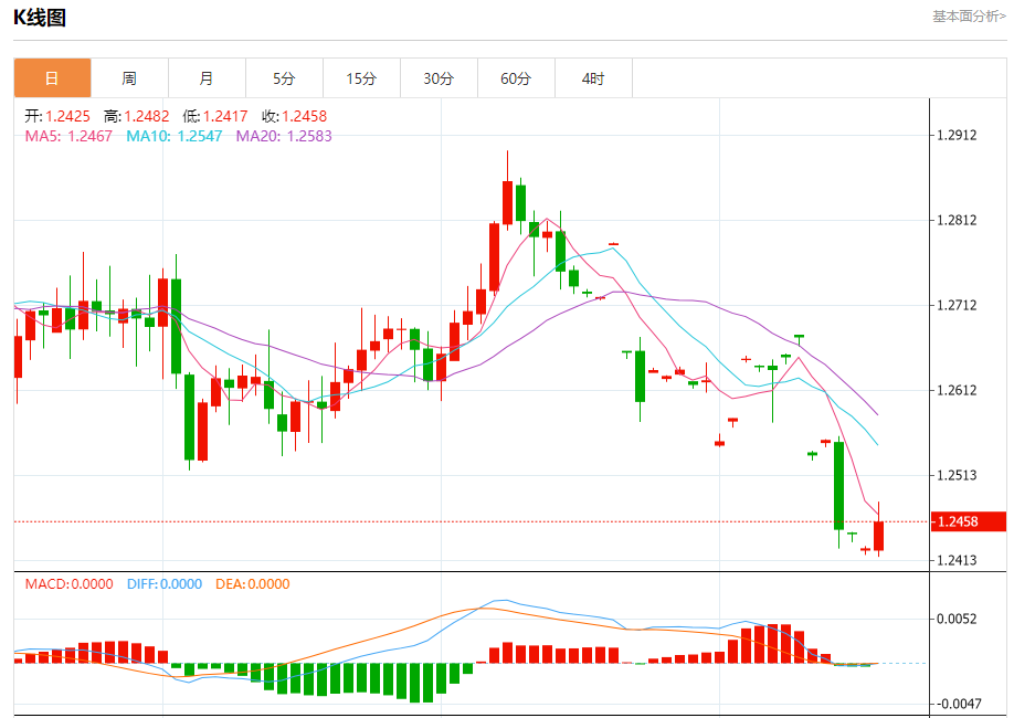 周三欧市盘中,英镑兑美元交投于1.2459,涨幅为0.26%。