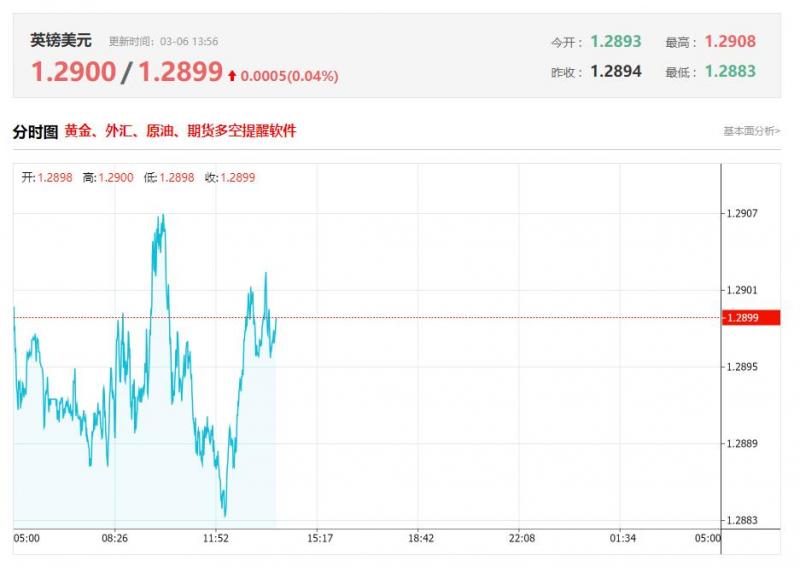 英镑兑美元今日汇率最高1.2900 ,最低1.2898 ,涨跌0.0005 ,涨跌幅0.04% 。