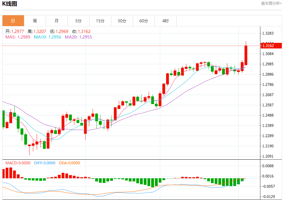 周四欧市盘中,英镑兑美元交投于1.3164,涨幅为1.24%。