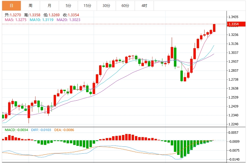 如果该货币对突破4月16日的高点1.3292,将出现新的上涨走势。 这一走势将推动主要货币对向9月25日的高点1.3430迈进,随后是1.3500的整数关口。