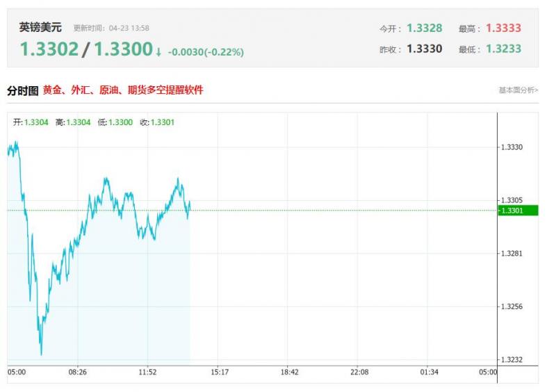 英镑兑美元今日汇率最高1.3304 ,最低1.3300 ,涨跌-0.0030 ,涨跌幅-0.22% 。