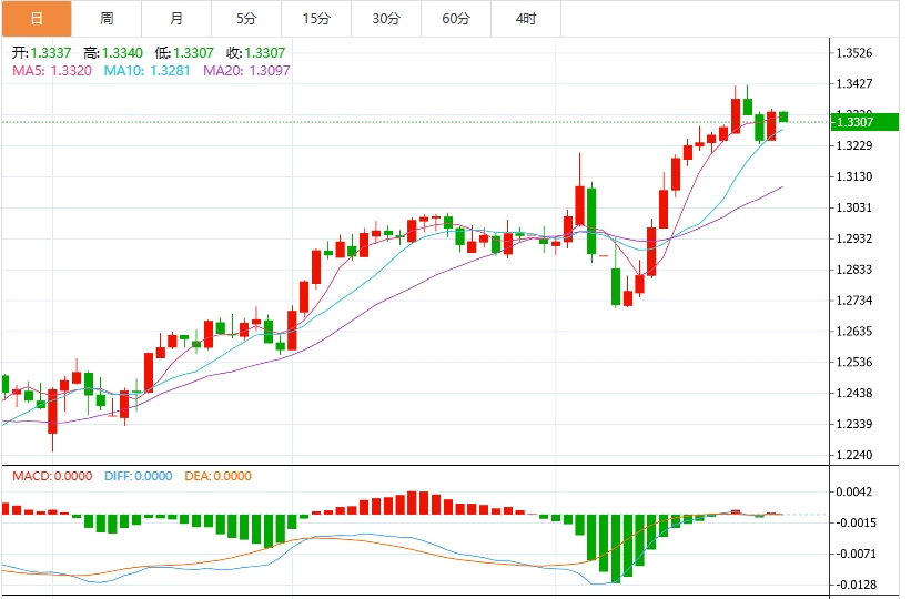 技术上,英镑/美元有望延续涨势,然而如果未能在周三的高点1.3338之上收盘,可能会导致回调至1.3194的50日简单移动均线(SMA)。