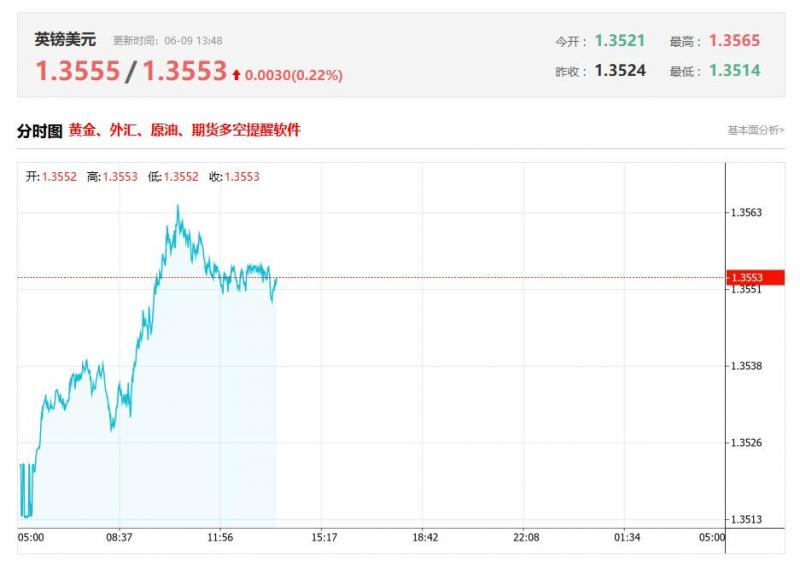 英镑兑美元今日汇率最高1.3555 ,最低1.3553 ,涨跌0.0030 ,涨跌幅0.22% 。