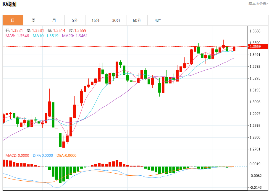 周一欧市盘中,英镑兑美元交投于1.3560,涨幅为0.26%。