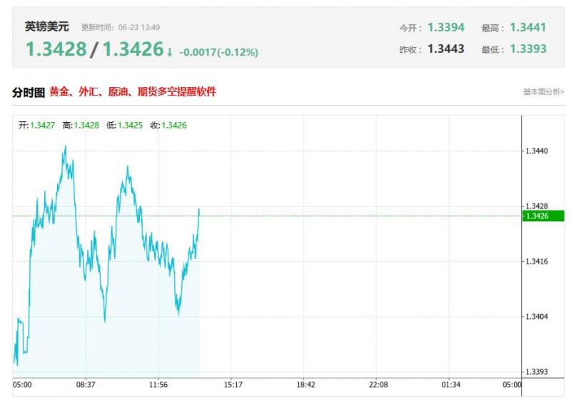 英镑兑美元今日汇率最高1.3428,最低1.3426 ,涨跌-0.0017 ,涨跌幅-0.12% 。