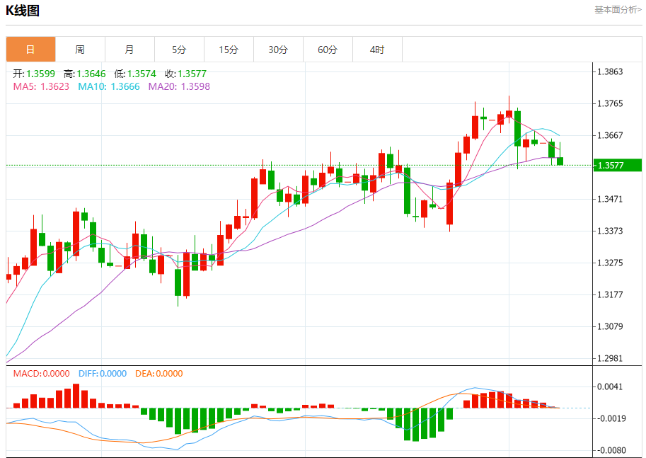 周二欧市盘中,英镑兑美元交投于1.3578,跌幅为0.17%。