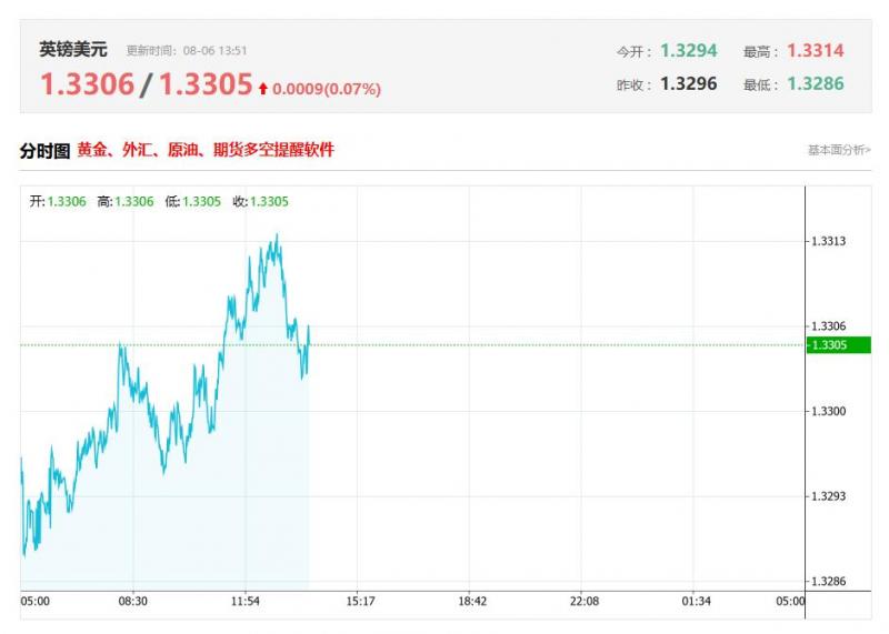 英镑兑美元今日汇率最高1.3306 ,最低1.3305 ,涨跌0.0009 ,涨跌幅0.07% 。