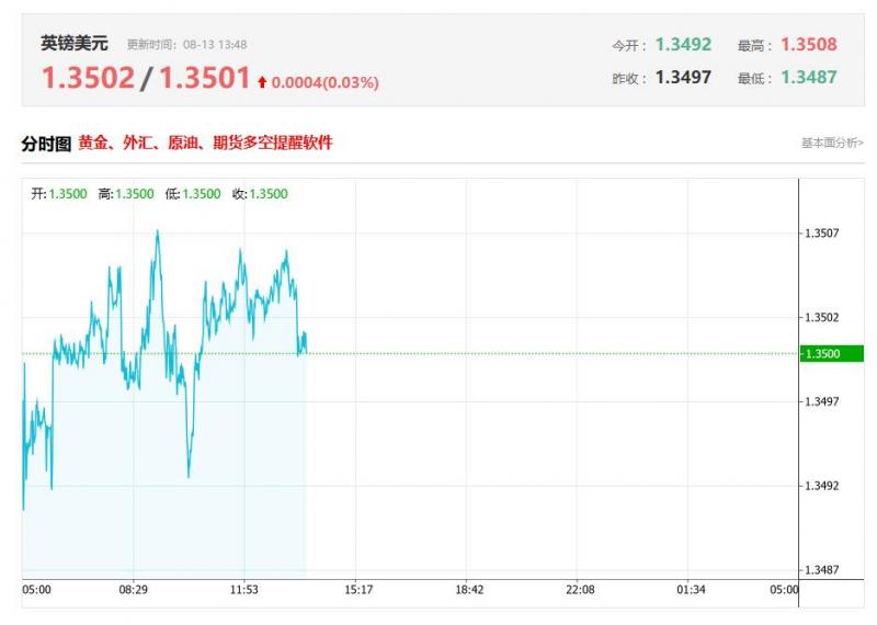 英镑兑美元今日汇率最高1.3502 ,最低1.3501 ,涨跌0.0004 ,涨跌幅0.03% 。