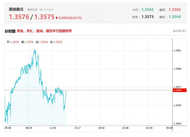 英镑兑美元今日汇率最高1.3576,最低1.3575,涨跌0.0002 ,涨跌幅0.01% 。