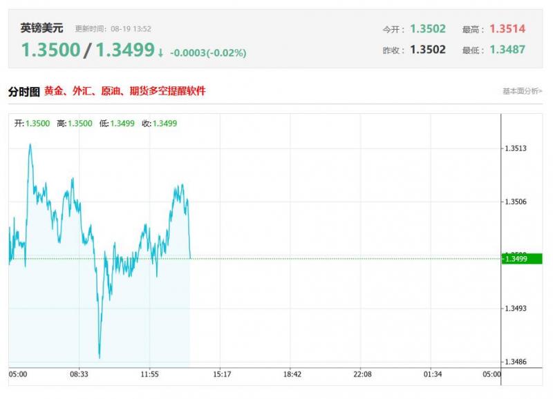 英镑兑美元今日汇率最高1.3500 ,最低1.3499 ,涨跌-0.0003 ,涨跌幅-0.02% 。
