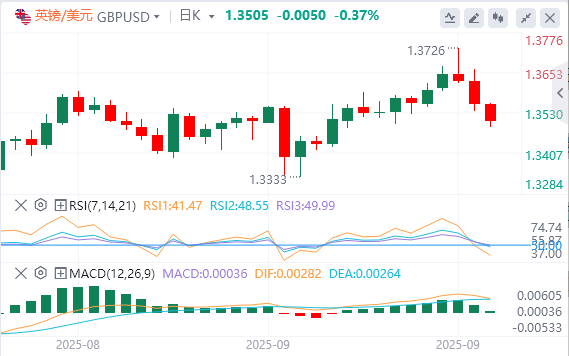 英镑已跌破20日指数移动平均线(EMA),该平均线交投于1.3530附近,表明近期趋势已转为看跌。
